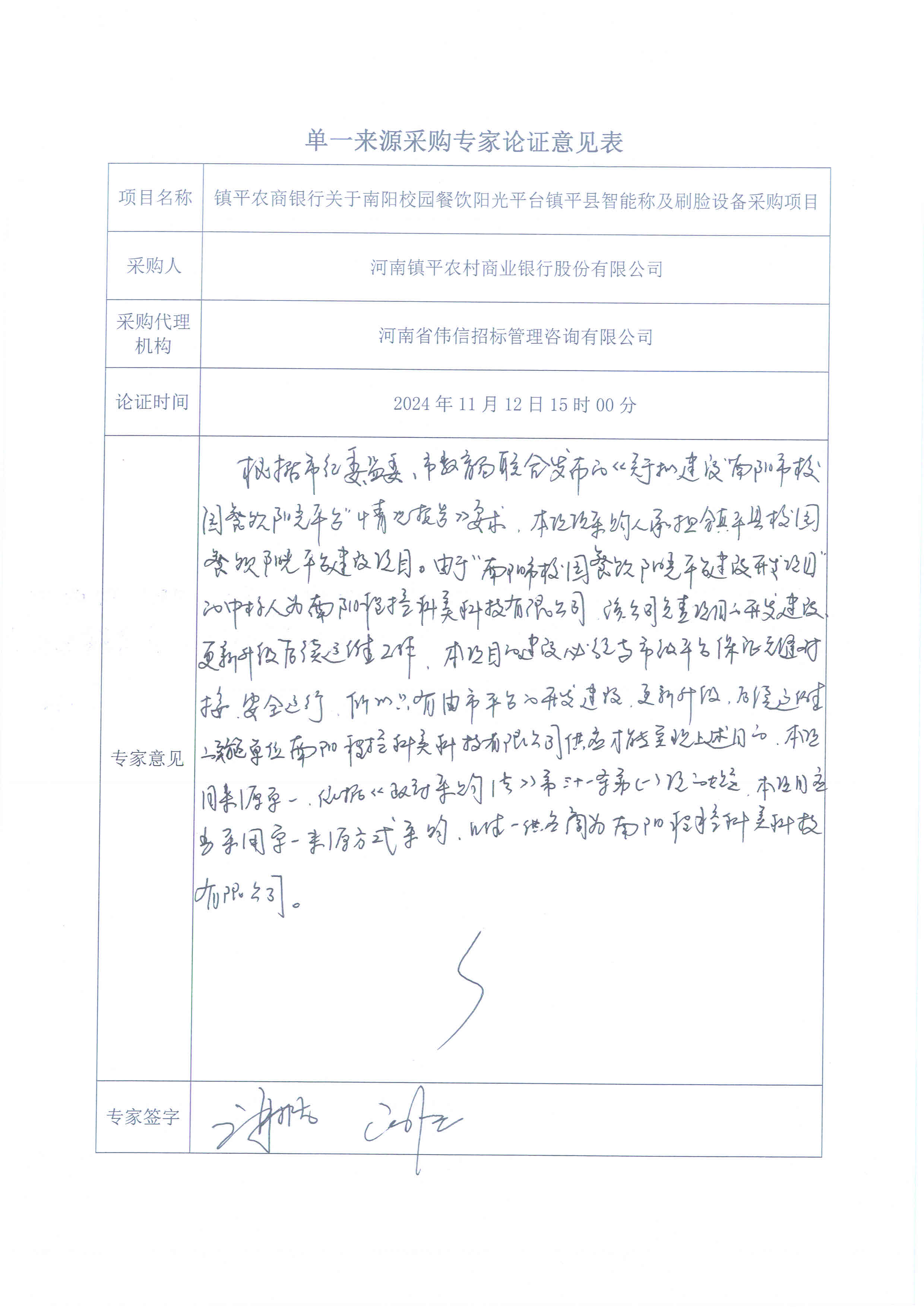 镇平农商银行关于南阳校园餐饮阳光平台镇平县智能称及刷脸设备采购项目单一来源采购公示